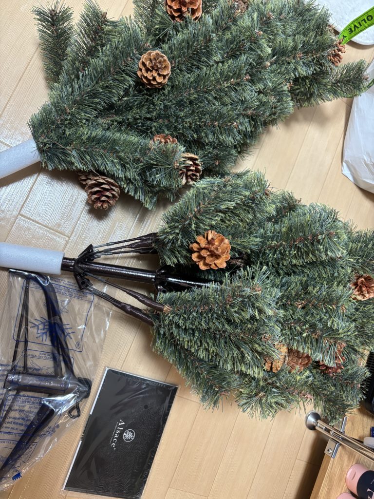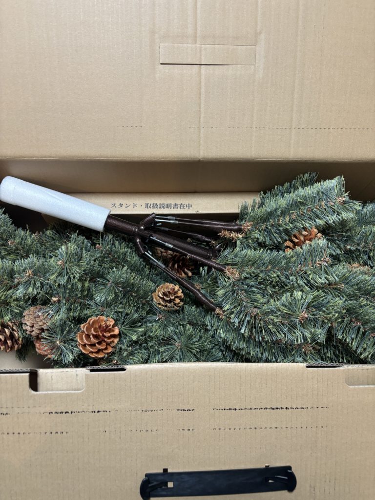 アルザスツリーは、届いた時のダンボールにしまうこともできますが、一度きれいに広げた枝をまたギュッと小さく戻すのは至難の業…。 無理に戻すと枝が傷んでしまいそうでした😥